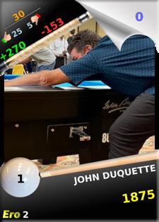 | 30 | JOHNNY BROWNING | IAN'S CUE CREW | 8.75 | 8.5 | 9.0 | 24 | 210 | 137 | 18 | 6 | 9 | 2 | 0 | 1 | 0 | |