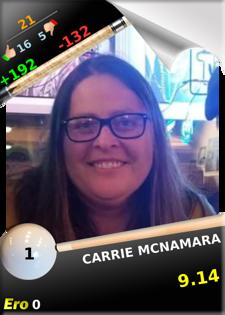 | 1 | CARRIE MCNAMARA | ONIE'S 3 | 192 | 132 | 60 | 21 | 16 | 5 | 0 | 0 | 91.43 | 6 | 9.14 | 1 | 0 | 1,488 | 5 | |