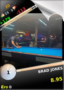 | 1 | BRAD JONES | PocketPounders | 179 | 113 | 66 | 20 | 15 | 5 | 0 | 0 | 89.50 | 8 | 8.95 | 0 | 0 | 1,770 | 5 | |